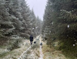 The old saying ‘no such thing as bad weather…’ is kind of true! Layer up, grab your bobble hat, gloves and a decent jacket. For your dog, consider a waterproof or warm coat if your dog feels the cold. When you’re comfortable, you move more! Don’t forget to have a towel ready for when you get back to the car/van/house. Think about that post-walk hot drink and tired cuddle!